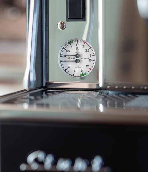 • Đồng hồ kép kiểm soát áp suất hơi và áp suất nồi hơi, giúp barista theo dõi tức thì.